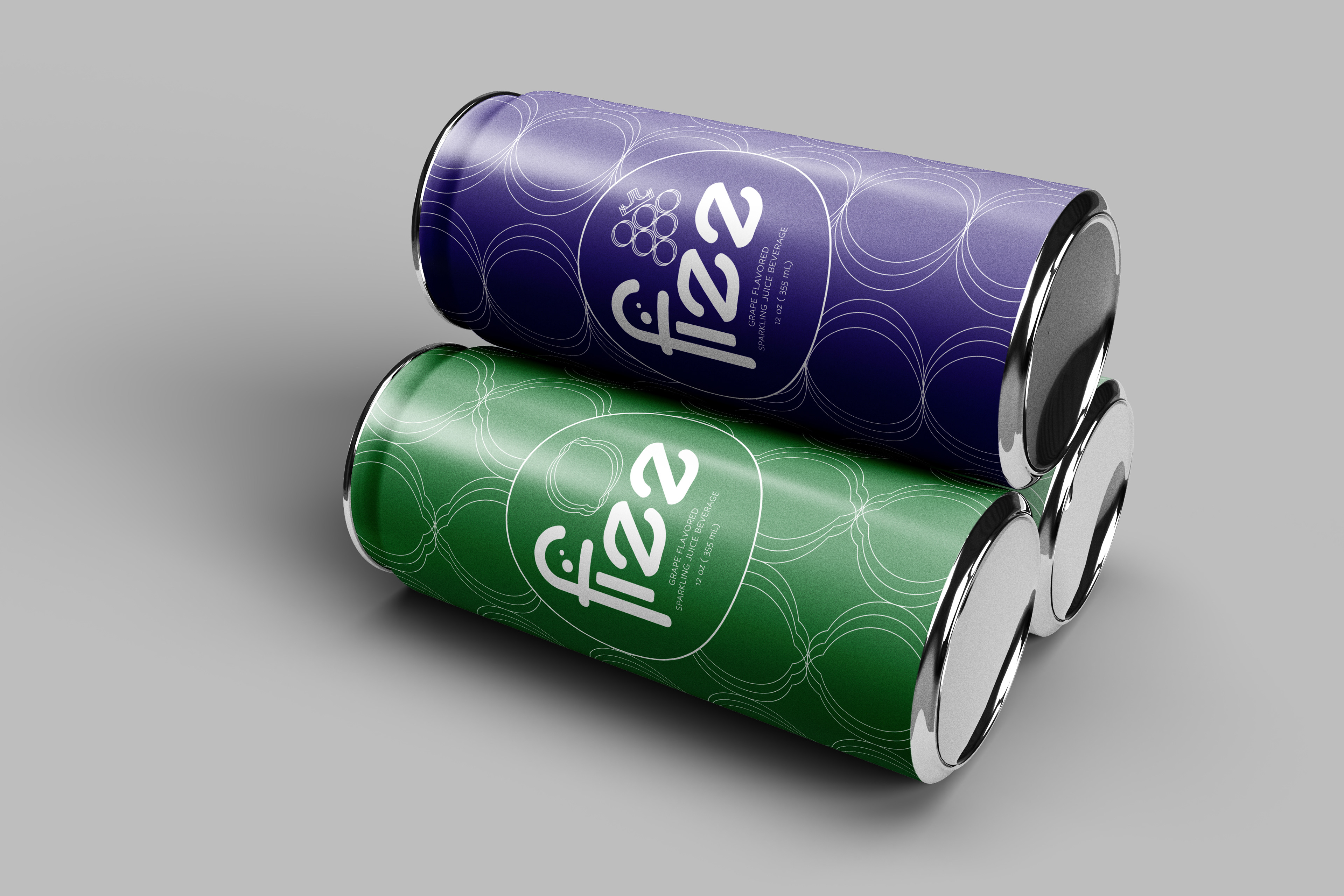 Made with real fruit juice and extra carbonation Fizz is a soda brand designed for people who want a healthy soda option, but don’t want to sacrifice the level of bubbles to get it. The name, logo, and minimal color palette convey a that its a simple soda, that does not have all of the artificial flavoring like most sodas on the market while still having all the flavor. The visual motif throughout the packaging is to indicate the flavor of each can, with a repeating element to communicate the bubbliness. Roles: Brand Development, Brand Identity, Logo and Package Design